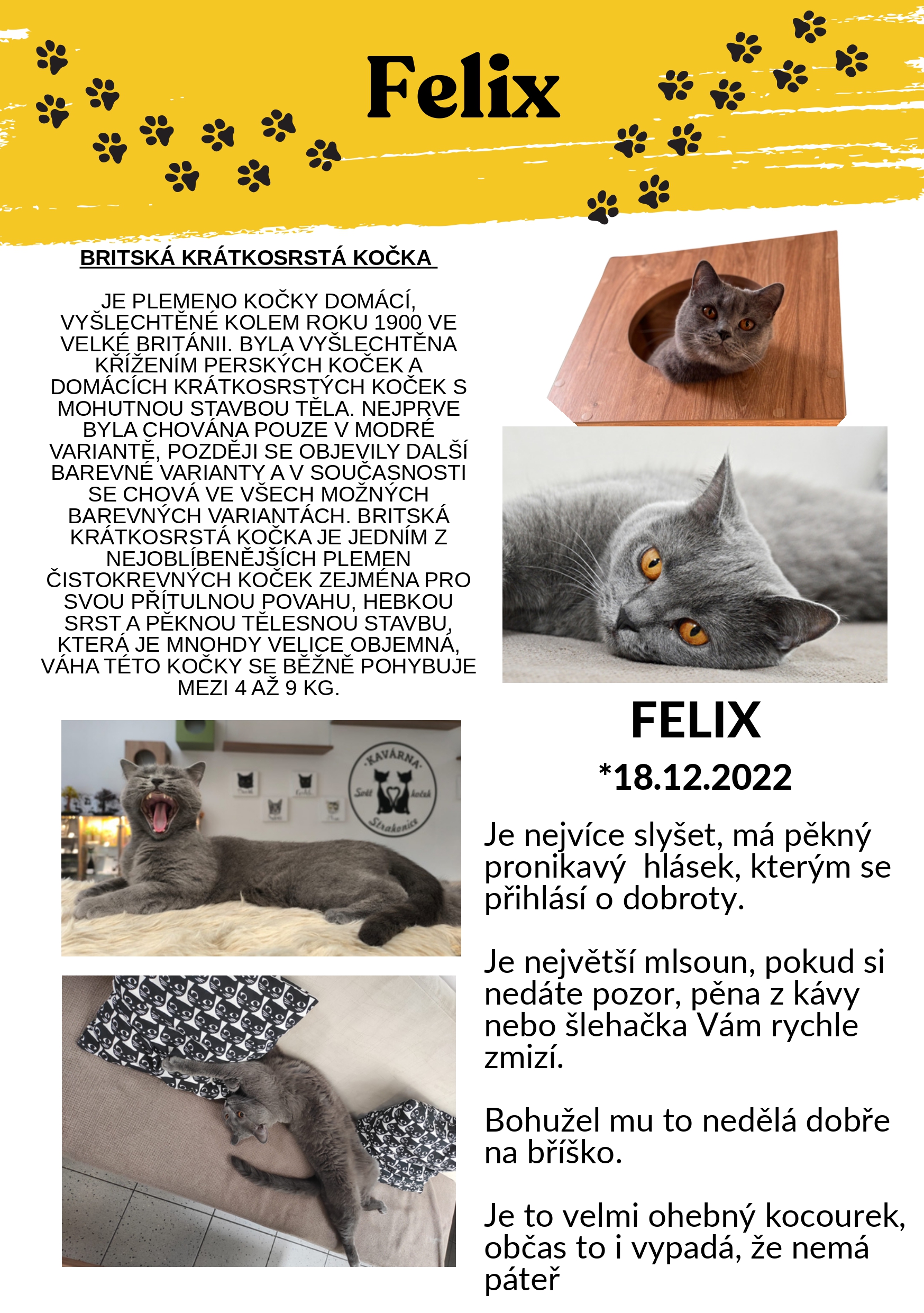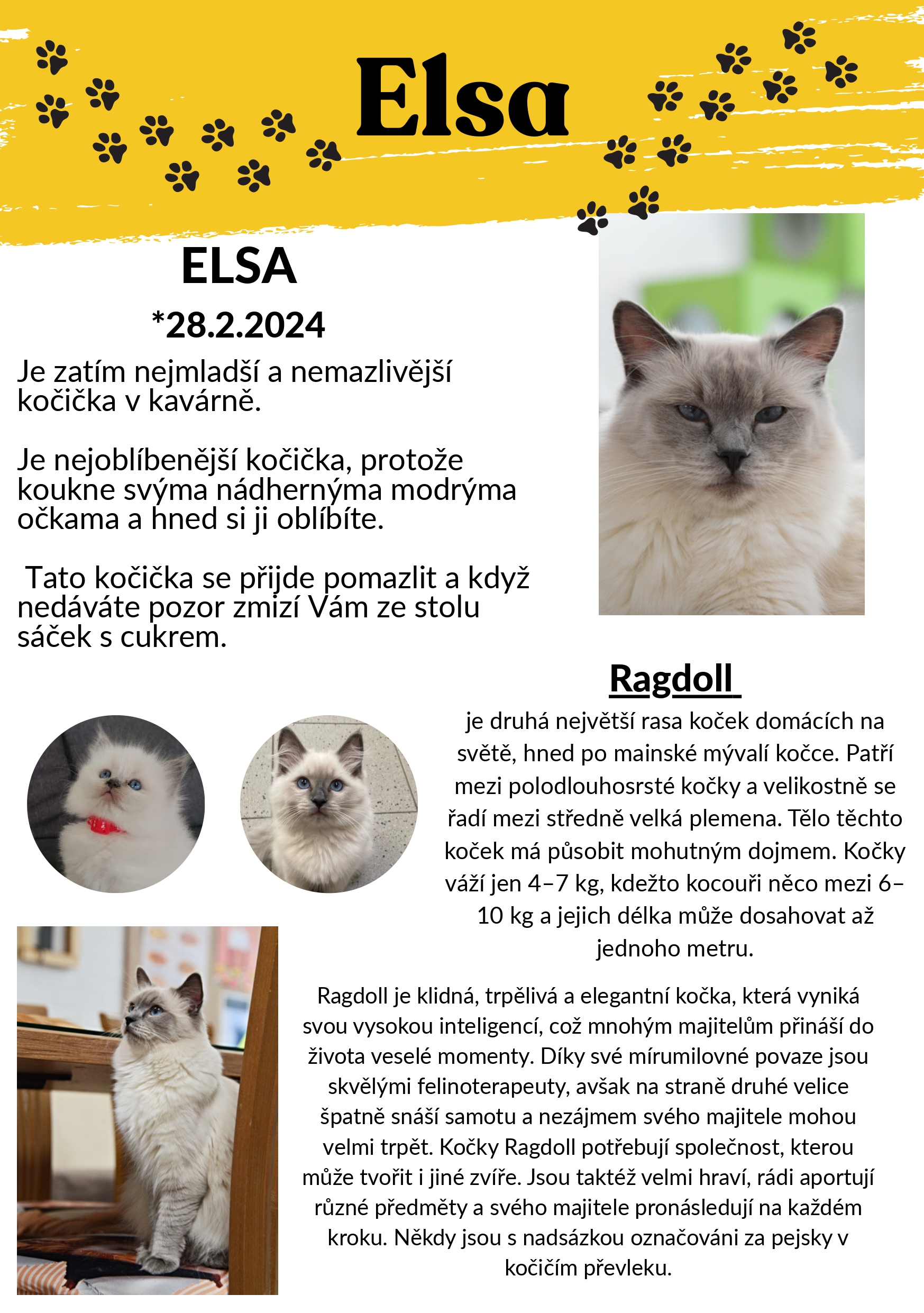 Máte slabost pro lahodnou kávu a roztomilé kočičí společníky? Proč si vybírat jen jedno, když můžete mít obojí v dokonalé harmonii? V naší kočičí kavárně Svět koček ve Strakonicích si vychutnáte šálek prvotřídní kávy ve společnosti osmi přátelských kočičích obyvatel. Pohodlně se usaďte, nechte se unést uklidňujícím vrněním a seznamte se s našimi chlupatými hostiteli – od majestátního Maine Coona přes elegantního Ragdolla, noblesní British Blue až po jedinečné kočičí křížence. Přijďte si odpočinout, načerpat pozitivní energii a užít si kouzelnou atmosféru plnou lásky ke kávě i kočkám!