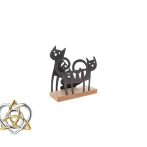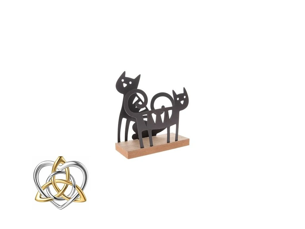 Černý držák na ubrousky má moderní designové prvky. Motiv kočky.