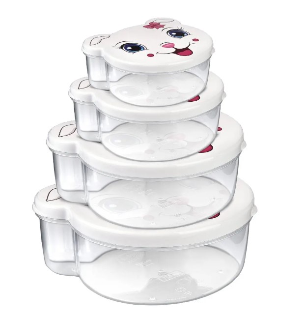Sada boxů na svačinu ve tvaru kočky, obsahuje 4 různé velikosti boxů s víčkem,